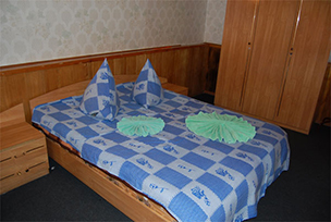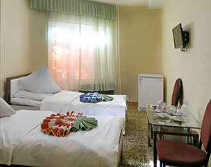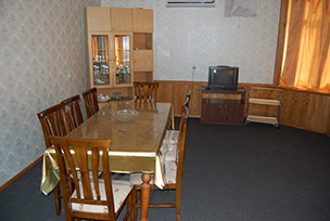 Двухместный ”Люкс” номер состоит из двух комнат: гостиной и спальни Гости могут пользоваться всеми удобствами (телевизор, холодильник, необходимая посуда) Санузел |