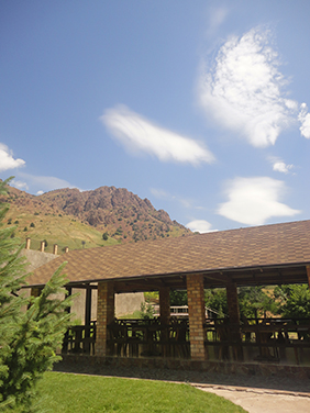 имеются ресторан, 2 корпуса. В каждом номере телевизор, санузел и душевая. К Вашим услугам, купание в горном озере, походы по маршрутам с инструктором, рыбалка в сезон. В ресторане бар, дискотека, светомузыка, по выходным шоу-программа |