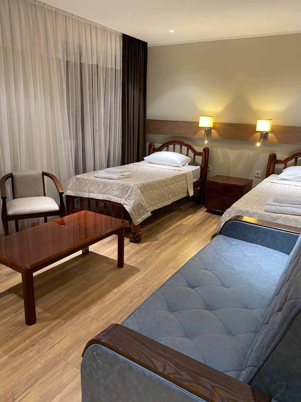 Номерной фонд: Полулюкс 2-х местный - 14 Полулюкс 1-но местный - 12 Люкс 2-х местный - 40 Коттедж - 4 Водоснабжение: горячая и холодная вода круглогодично |